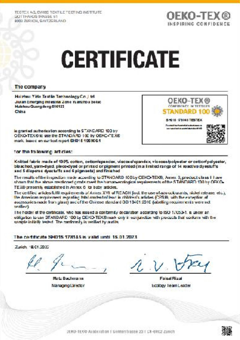惠州市益德纺织有限公司,自2008年成立以来,专注于针织面料、休闲面料,时尚粗针环保面料研发与生产,2017年7月搬至 惠州桦阳环保工业园内,拥有现代化厂房,占地面积16591平方米,建筑面积18950平方米,员工人数共有260人,厂房、设备投资 7000万,年营业额2亿。自有织造、染色、印花一体生产设备,货期快,品质把控到位,有GRS、GOTS、OCS、BCI、OEKO-TEX等认 证;更有经验丰富的管理与研发团队,是一家集研发、设计、生产、销售于一体的现代化全产业链技术型企业。益德凭借着丰富的研发、设计,先进的生产技术,高效.节能.降低成本和缩短货期优势巧妙的替代了靠传统手工缝制的毛织产品.融 合国际时尚流行元素,倡导低碳环保和独立、自由、时尚敏感的现代化设计风格成功打入国际市场,成为国际快时尚品牌:H&M 、 ZARA指定供应商,并长期为:东南亚服装品牌制衣厂,国内品牌FOB制衣厂,品牌:H&M 、ZARA、Carter’s 、GAP、森马、以纯等 提供优质货布,产品远销柬埔寨、孟加拉、越南、日本等国家。一直秉着益德使命:珍爱环境,畅享生活,抱着益德愿景:成为新科技,时尚环保面料的代言者,带着核心价值观:迭新,诚壹, 幸福,感恩,做好每一米品质!编织亿万色彩,铭造精彩人生,用爱生活每一天!!